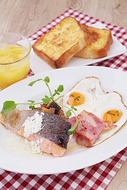 サーモンのソテー+スクランブルエッグor目玉焼き